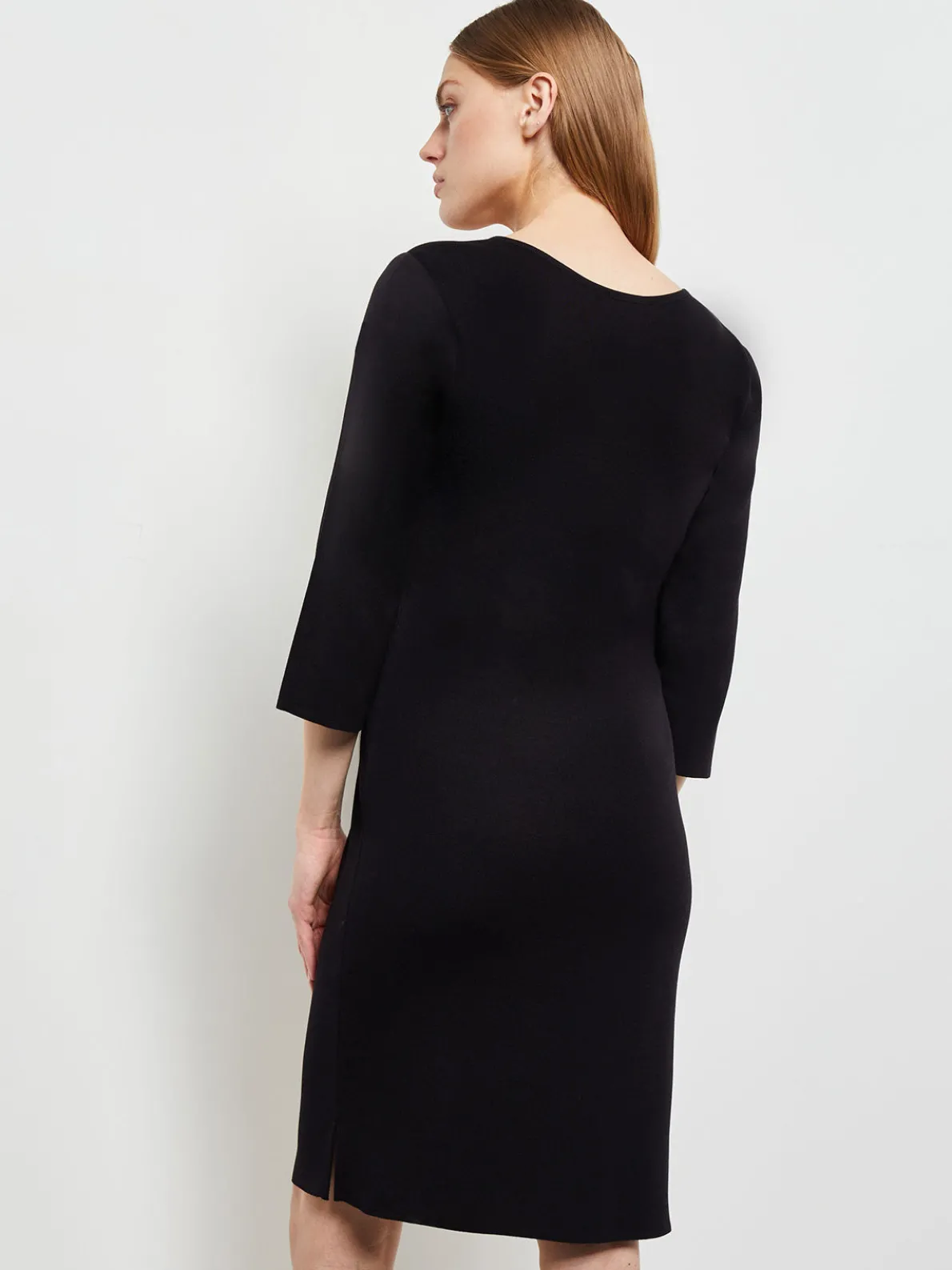 Misook is the epitome of timeless elegance and effortless style. Crafted from a high-quality knit fabric, the dress features a classic sheath design that skims the body without being too tight or revealing, making it a versatile and sophisticated option for a range of occasions. The 3/4 length sleeves add a touch of coverage, making it perfect for transitioning between seasons.