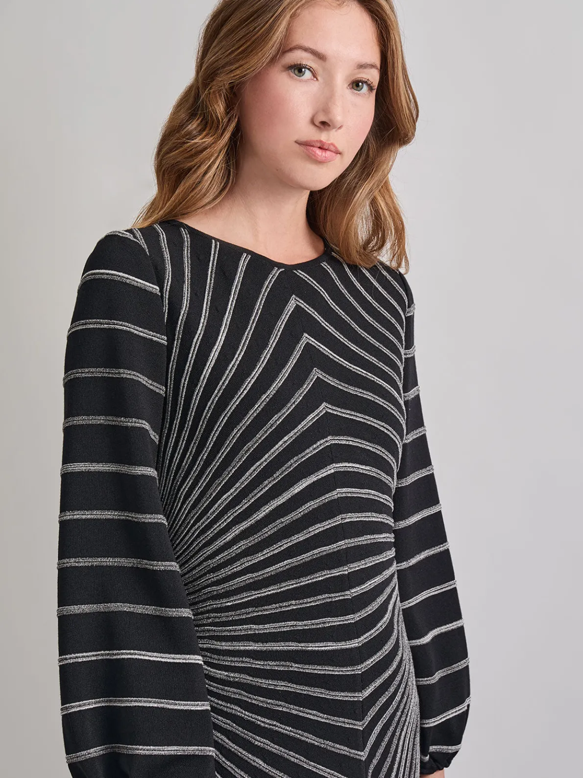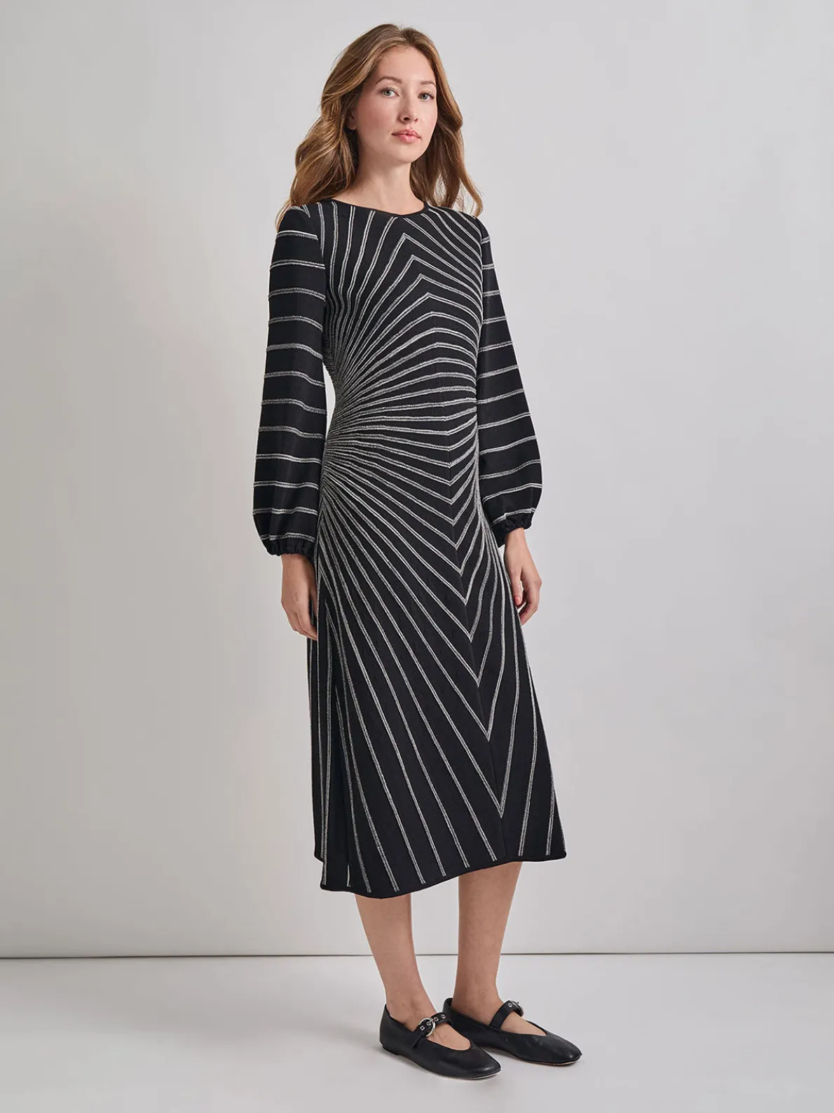 Our A-Line Melange Stripped Soft Knit Midi Dress features a boat neckline and long sleeves. With a pullover design, this garment is a simple, yet elegant, piece. Wear to date night or any special occasion.