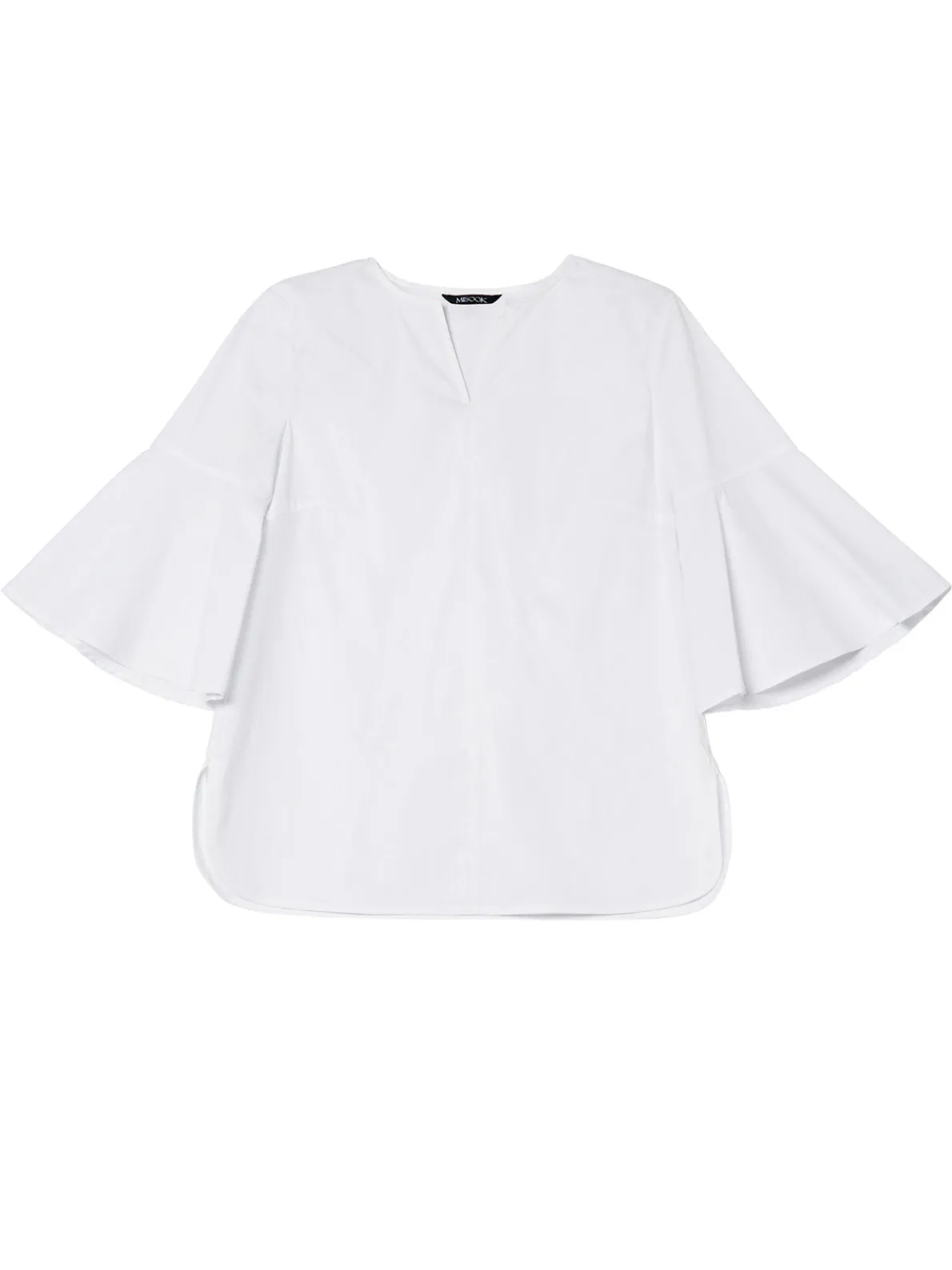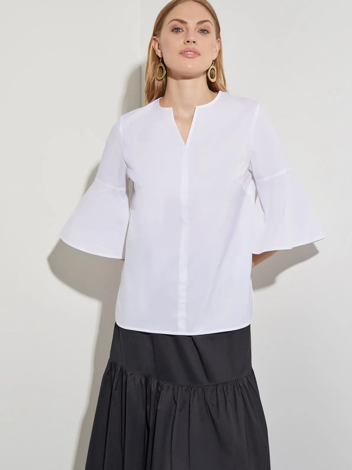 Daring style begins with adventurous details, and the bold bell sleeves of our poplin blouse leave an unforgettable impression. This crisp button-up features a stunning design that perfectly contrasts a sleek silhouette with dramatic sleeves – adding a modern finish to an already polished look.