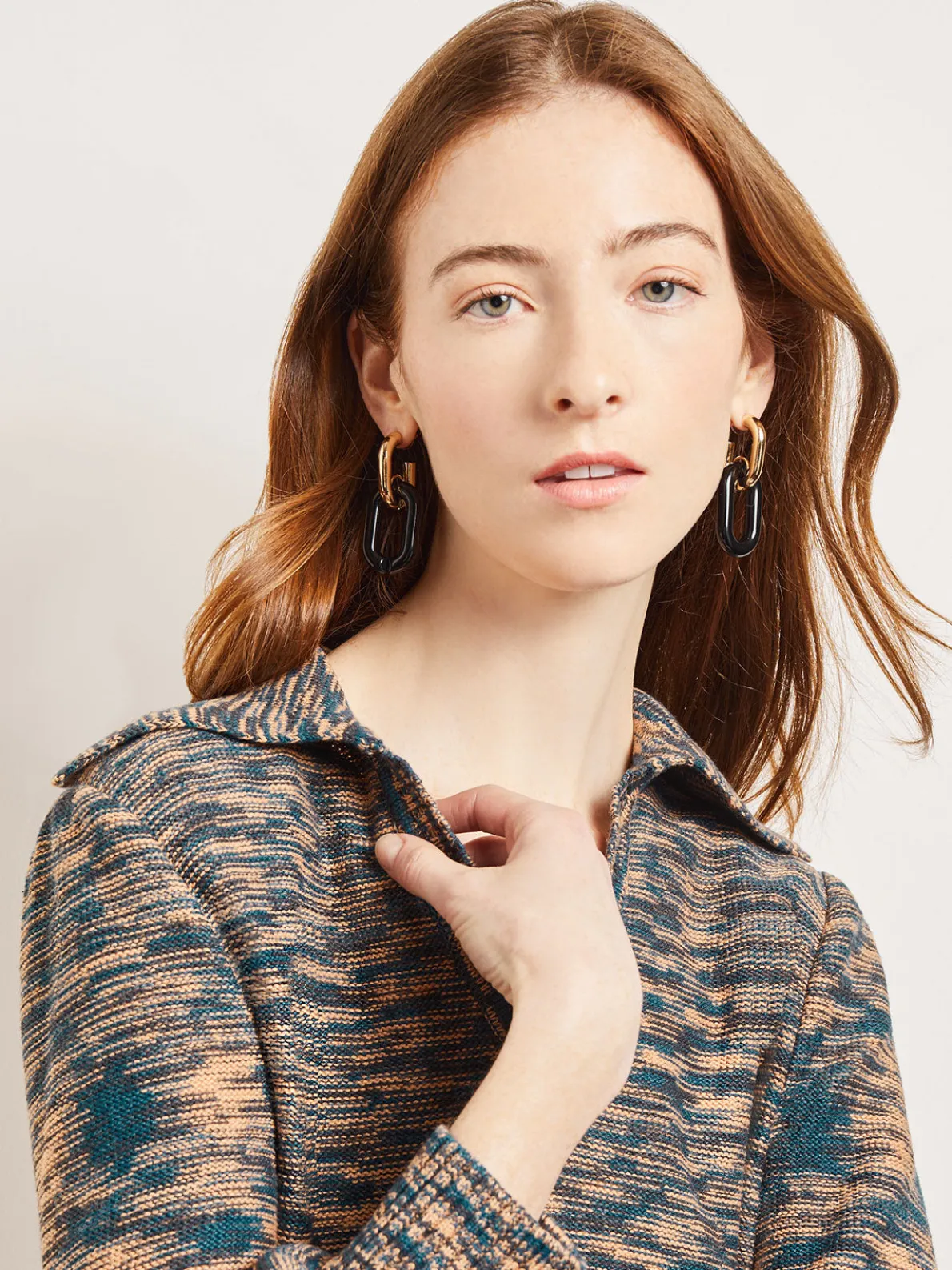 Bold elements collide to create our statement Gold & Black Resin Doorknocker Earrings. This remarkable pair features a fascinating double-drop design with smooth black resin hoops suspending from polished gold open-hoops. This clip-on pair can be worn to uplevel any attire for a head-turning effect.
