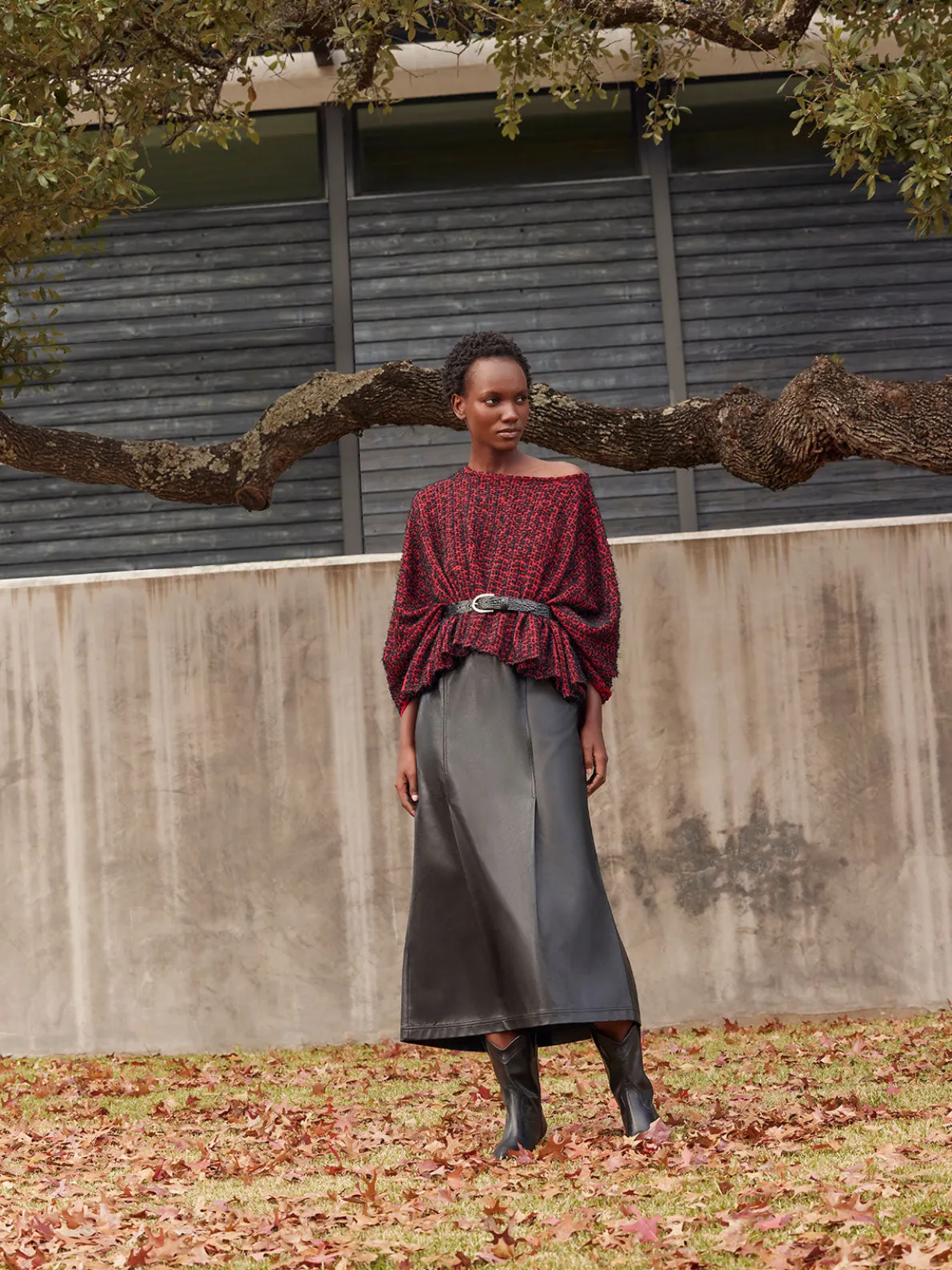 Our Two-Tone Eyelash Knit Poncho is the perfect topper for a chilly night. The eyelash knit gives this garment added dimension and texture. Pair on top of the matching dress for a complete tonal look or with a pair of our iconic ponte pants.