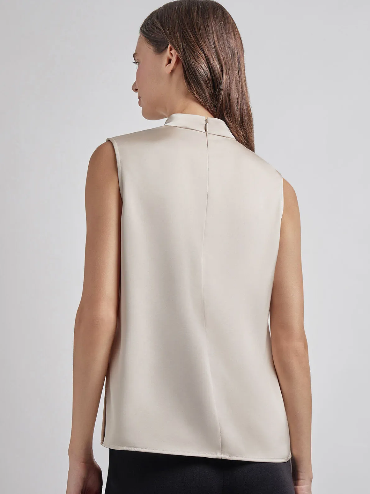 Our High Neck Sleeveless Blouse is an effortless piece. The draped neck offers a touch of design on the neckline. Pair this with a nice pair of trousers or a flowy skirt for an effortless look.