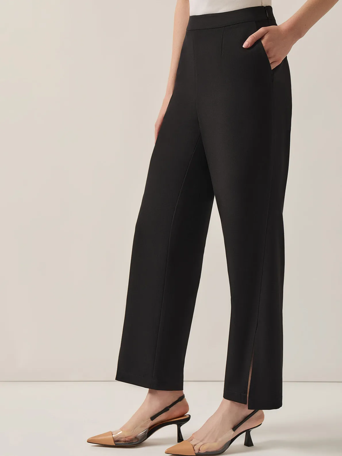 Jump into our Split Hem Straight Leg Pants. These pants feature a side zipper closure and functional pockets. The split hem offers an opportunity to wear a funky shoe that will peak through with each step.
